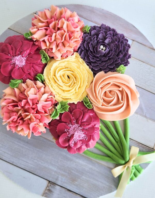 Ditch the flowers & send a stunning edible bouquet of beautifully hand-piped floral cupcakes, refined in detail & delicious to devour. We know, it's almost too pretty to eat! Decorations and colours may vary slightly from the picture.